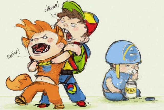 | Hahaha... Adorei o IE comendo cola! Firefox Chrome Explorer Boys por Jeff McNeill. Sob um licença CC |